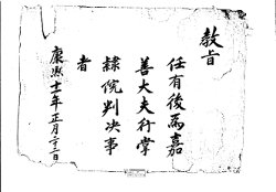 고문서-교령류-고신 정치·행정-임면-고신 5책 안동 천전 의성김씨 천상각파편Ⅰ-고문서-교령류-교첩 1672년 김지탁(金之鐸) 고신(告身) -7 김지탁 이조 1672 이조 낱장 1장 종이 한자 5 고문서 1. 교령류 (3) 교첩 교첩 교첩 10 115 005_0238 -