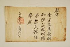 고문서-교령류-고신 정치·행정-임면-고신 109책 고령 선산김씨 김종직 종가 고문서-고문서-교령류-고신 고신(告身) -01 성종 1470 합가리 109 고문서 교령류 고신 1 고신 6 고령 선산김씨 점필재 김종직 종가 대가야박물관 ◦ 朝散大夫·行藝文館修撰 -