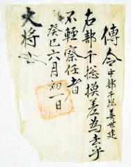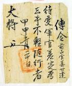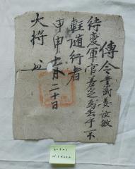 고문서-첩관통보류-전령 정치·행정-명령-전령 89책 아산 선교 장흥임씨 종가편-고문서-첩관통보류-전령 1718년 대장(大將) 전령(傳令) 임욱 대장 1718 낱장 1장 종이 한자 89 고문서 첩관통보류 첩관통보류 전령 전령 1 63 089_0091 출판정보:『고문서 -