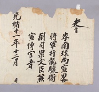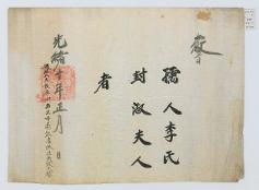 고문서-교령류-고신 정치·행정-임면-고신 1885년 이인철 처 청주경씨(李寅轍 妻 淸州慶氏) 추증교지(追贈敎旨) 이인만 처 청주경씨 1885 1 施命之寶(10.5×10.5) 김포 전주이씨 효헌 이인철 후손가 한국학중앙연구원 장서각 G002+AKS+KSM- -