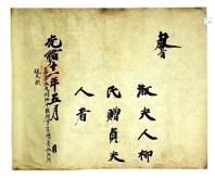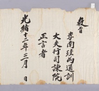 고문서-교령류-고신 정치·행정-임면-고신 49책 안동 법흥 고성이씨 종가 임청각편-고문서-교령류-고신 1885년 유인김씨(孺人金氏) 추증교지 -1 국왕:고종 유인김씨 1885 한성 낱장 1장 종이 한자 49 고문서 1. 교령류 (1) 고신 고신 고신 45 23 04 -