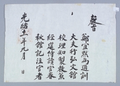 고문서-교령류-고신 정치·행정-임면-고신 9책 부여·강화·영주 창원황씨편-고문서-교령류-교지 1886년 황호직(黃浩直) 고신(告身) 황호직 1886 한성 낱장 1장 종이 한자 9 고문서 1. 교령류 (1) 교지 교지 교지 80 39 009_0080 출판정보:『고문서 -