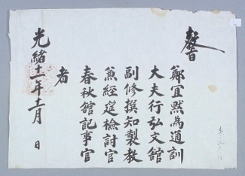 고문서-교령류-고신 정치·행정-임면-고신 88책 상주 우산 진주정씨 우복 정경세 종가편-고문서-교령류-고신 1885년 정의묵(鄭宜黙) 고신(告身) -3 국왕:고종 정의묵 1885 한성 낱장 1장 종이 한자 88 고문서 1. 교령류 (3) 고신 고신 고신 205 10 -