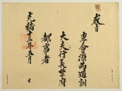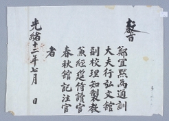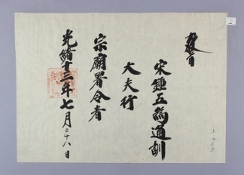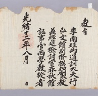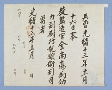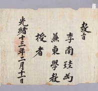 고문서-교령류-유서 국왕·왕실-교령-유서 37책 구례 오미 문화류씨 운조루편Ⅰ-고문서-교령류-유서 1887년 이헌식(李憲植) 유서(諭書) 국왕:고종 이헌식 1887 한성 낱장 1장 종이 한자 37 고문서 1. 교령류 (3) 유서 유서 유서 1 40 037_0073 -