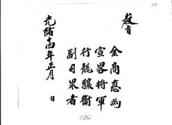 고문서-교령류-고신 정치·행정-임면-고신 37책 구례 오미 문화류씨 운조루편Ⅰ-고문서-교령류-고신 1888년 김씨(金氏) 추증교지(追贈敎旨) 국왕:고종 김씨 1888 한성 낱장 1장 종이 한자 37 고문서 1. 교령류 (2) 고신 고신 고신 48 27 037_005 -