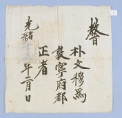 고문서-교령류-고신 정치·행정-임면-고신 88책 상주 우산 진주정씨 우복 정경세 종가편-고문서-교령류-고신 1889년 정의묵(鄭宜黙) 처(妻) 유씨(柳氏) 고신(告身) 국왕:고종 유씨 1889 한성 낱장 1장 종이 한자 88 고문서 1. 교령류 (3) 고신 고신 고 -