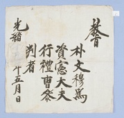 고문서-교령류-고신 정치·행정-임면-고신 1889년 박문목(朴文穆) 고신(告身) -1 국왕:고종 박문목 1889 2장 한자 고문서 교령류 교령류 고신 밀양 신호 밀성박씨 종가 모선재·덕남서원 밀양 신호 밀성박씨 종가 모선재·덕남서원 朴文穆 관련 敎旨 G0 -
