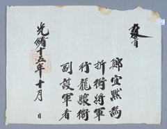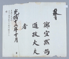 고문서-교령류-고신 정치·행정-임면-고신 88책 상주 우산 진주정씨 우복 정경세 종가편-고문서-교령류-고신 1889년 정의묵(鄭宜黙) 고신(告身) -08 국왕:고종 정의묵 1889 한성 낱장 1장 종이 한자 88 고문서 1. 교령류 (3) 고신 고신 고신 216 1 -