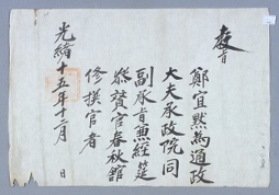 고문서-교령류-고신 정치·행정-임면-고신 88책 상주 우산 진주정씨 우복 정경세 종가편-고문서-교령류-고신 1889년 정의묵(鄭宜黙) 고신(告身) -11 국왕:고종 정의묵 1889 한성 낱장 1장 종이 한자 88 고문서 1. 교령류 (3) 고신 고신 고신 219 1 -
