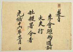 고문서-교령류-차첩 정치·행정-임면-차첩 114책 제주 진주강씨·곡산강씨·김해김씨·경주김씨·제주고씨·동래정씨 고문서-고문서-진주강씨-강익진 후손가-교령류-차첩 차첩(差帖) -48 제주목사 1890 제주특별자치도 제주시 애월읍 봉성리 114 고문서 진주강씨 강익진 후 -