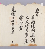 고문서-교령류-고신 정치·행정-임면-고신 61책 예산 한곡 한산이씨 수당 고택편-고문서-교령류-고신 1891년 이남규(李南珪) 고신(告身) -11 국왕:고종 이남규 1891 낱장 1장 종이 한자 61 고문서 1. 교령류 (5) 고신 고신 고신 161 91 061_0 -