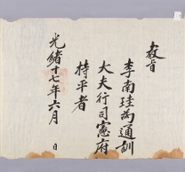 고문서-교령류-고신 정치·행정-임면-고신 22책 영암 남평문씨편Ⅱ-고문서-문공선 소장-교령류-교지 1891년 공명첩(空名帖) -3 국왕:고종 1891 한양 낱장 1장 종이 한자 22 고문서 4. 문공선소장 1. 교지 1. 교지 교지 4 767 022_0245 출판정 -