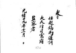 고문서-교령류-고신 정치·행정-임면-고신 75책 남원·구례 삭녕최씨편Ⅱ-고문서-교령류-고신 1893년 최선구(崔璇九) 고신(告身) 최선구 이조 1893 한성 낱장 1장 종이 한자 75 고문서 1. 교령류 (2) 고신 고신 고신 6 7 075_0007 출판정보:『고문 -