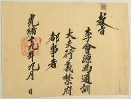 고문서-교령류-차첩 정치·행정-임면-차첩 15책 안동 하회 풍산류씨편Ⅰ-고문서-교령류-차첩 1893년 유교영(柳喬榮) 차첩(差帖) -4 유교영 이조 1893 한양 낱장 1장 종이 한자 15 고문서 3. 첩관통보류 (2) 차첩 차첩 차첩 11 755 015_0449 -