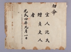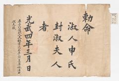고문서-교령류-관고 정치·행정-임면-관고 61책 예산 한곡 한산이씨 수당 고택편-고문서-교령류-관고 1900년 심씨(沈氏) 관고(官誥) 국왕:고종 심씨 1900 낱장 1장 종이 한자 61 고문서 1. 교령류 (5) 고신 관고 고신 183 102 061_0202 출판 -