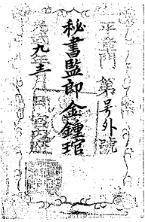 고문서-교령류-고신 정치·행정-임면-고신 104책 영광 연안김씨 고문서Ⅰ-고문서-교령류-고신 고신(告身) -67-2 1905 외간리 104 고문서 교령류 고신 67-2 고신 71 영광 연안김씨 김인택 종가 영광 연안김씨 김인택 종가 金鍾官의 秘書監郞 임명 -