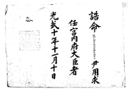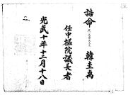 고문서-교령류-관고 정치·행정-임면-관고 114책 제주 진주강씨·곡산강씨·김해김씨·경주김씨·제주고씨·동래정씨 고문서-고문서-경주김씨-문중회-교령류-관고 관고(官誥) -6 이윤용 1907 제주시 114 고문서 경주김씨 문중회 교령류 관고 819 제주 경주김씨 문중회 -