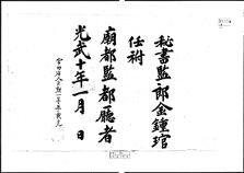 고문서-교령류-차첩 정치·행정-임면-차첩 104책 영광 연안김씨 고문서Ⅰ-고문서-교령류-차첩 차첩(差帖) -2 1906 외간리 104 고문서 교령류 차첩 2 차첩 86 영광 연안김씨 김인택 종가 영광 연안김씨 김인택 종가 親臨中和殿頒詔陳賀時展表官에 秘書卿 -