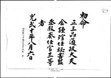 고문서-교령류-관고 정치·행정-임면-관고 114책 제주 진주강씨·곡산강씨·김해김씨·경주김씨·제주고씨·동래정씨 고문서-고문서-김해김씨-김희주 후손가-교령류-관고 관고(官誥) -4 고종 1906 제주특별자치도 제주시 애월읍 납읍리 114 고문서 김해김씨 김희주 후손가 -