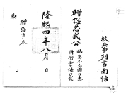 고문서-교령류-관고 정치·행정-임면-관고 10책 장서각편Ⅰ-고문서-교령류-칙명 1910년 이상정(李象靖) 칙명(勅命) 국왕:순종 이상정 1910 한성 낱장 1장 종이 한자 10 고문서 1. 교령류 (13) 칙명 칙명 칙명 60 159 010_0147 출판정보:『고문 -