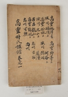 梁 僧旻(467〜527)과 寶唱이 508년경에 찬집한 불교백과사전 『經律異相』을 1936년에 蔡瑞應이 일부를 뽑아 필사하였을 것으로 추정되는 책.고서-자부-석가류 종교·풍속-불교-경전 121책 고성 옥천사 고문서-고서-자부-석가류 경율이상등서(經律異相𧬸書) 1936 필사본 선장 不分卷1冊(56張) 무계 12行字數不定 무어미 121 고서 자부 자부 3 121_0028 한국 고문서 조사정리 및 보존처리 사업 -