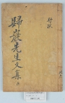 조선 후기의 문신 歸巖 李元禎(1622〜1680)의 文集으로 木活字本에 누락된 遺文을 더 수집하여 1937년에 간행한 木板本.고서-집부-별집류 교육·문화-문학저술-문집 김천 성산이씨 양계 이하 종가 전적-고서-집부-별집류 귀암선생문집(歸巖先生文集) -1 1937 목판본 선장 12卷6冊 사주쌍변 유계 10行20字 이엽화문어미-상하내향이엽화문어미 其山 李昶燮信 고서 집부 집부 28 D01_0 -