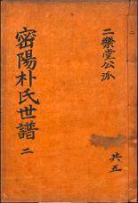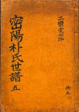 고서-사부-계보류 사회-가족친족-족보 경주 경주이씨 이찬우 소장 전적-고서-사부-계보류 밀양박씨 이요당파세보(密陽朴氏二樂堂派世譜, 1938) -1 1938 석인본 선장 5卷5冊 崇德殿圖, 新羅故圖王陵圖 外 사주쌍변 유계 世別6段 12行24字 이엽화문어미-상하향이엽화 -