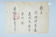 1635년(仁祖 13) 仁祖가 朴明榑 妻 尙州金氏에게 발급한 告身.고문서-교령류-고신 정치·행정-임면-고신 119책 함양 밀양박씨 지족당 박명부 종가 고문서-고문서-교령류-고신 1635년 박명부(朴明榑) 처(妻) 상주김씨(尙州金氏) 고신(告身) 인조 박명부 처 상주김씨 1635 1 施命之寶 119 고문서 교령류 교령류 고신 35 -