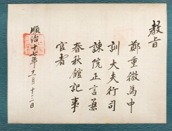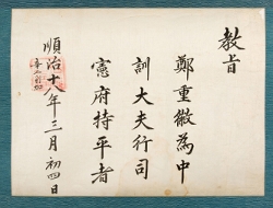 1675년에 鄭植을 嘉善大夫 吏曹參判 兼同知經筵義禁府春秋館成均館事弘文館提學海原君에 추증하는 문서의 複本.고문서-교령류-고신 정치·행정-임면-고신 122책 양주 사릉 해주정씨 종가 고문서Ⅰ-고문서-교령류-고신 1675년 정식(鄭植) 추증교지(追贈敎旨) 복본(複本) 숙종 1675 1 122 고문서 교령류 교령류 고신 1 122_0587 양주 사릉 해주정씨 종가 양주 사릉 -