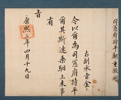 고문서-교령류-고신 정치·행정-임면-고신 김천 성산이씨 양계 이하 종가 전적-고문서-교령류-고신 1675년 이하(李𩡘) 고신(告身) -03 숙종 이하 1675 1 施命之寶 고문서 교령류 교령류 고신 14 D01_0456 한국 고문서 조사정리 및 보존처리 사업 김천 -