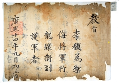 1675년에 鄭重徽에게 守慶尙道觀察使 兼兵馬水軍節度使巡察使大丘府使에 임명하면서 부임지를 잘 다스릴 것을 훈유하는 使命訓諭敎書.고문서-교령류-교서 국왕·왕실-교령-교서 122책 양주 사릉 해주정씨 종가 고문서Ⅰ-고문서-교령류-교서 1675년 정중휘(鄭重徽) 교서(敎書) 숙종 1675 1 施命之寶 122 고문서 교령류 교령류 교서 1 122_0605 양주 사릉 해주정씨 종가 양주 사릉 해주정 -