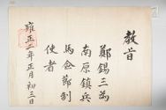1726년 前慶尙右兵使 崔鎭漢의 狀啓에 의해 정혁선이 金山郡守 재직시에 軍旅의 重務에 힘쓴 공으로 熟馬 1匹과 함께 내린 褒賞 諭書.고문서-교령류-유서 국왕·왕실-교령-유서 120책 안성 보체 동래정씨 정홍순 종가 고문서-고문서-교령류-유서 1726년 정혁선(鄭赫先) 유서(諭書) 영조 정혁선 1726 1 諭書之寶 120 고문서 교령류 교령류 유서 2 120_0309 한국 고문서 조사정리 및 보존 -