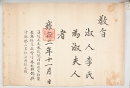 1724년 정석삼 처 전주이씨를 淑夫人에 임명하는 문서.고문서-교령류-고신 정치·행정-임면-고신 120책 안성 보체 동래정씨 정홍순 종가 고문서-고문서-교령류-고신 1724년 정석삼 처 전주이씨(鄭錫三 妻 全州李氏) 고신(告身) 영조 정석삼 처 전주이씨 1724 1 施命之寶 120 고문서 교령류 교령류 고신 71 120 -