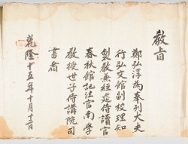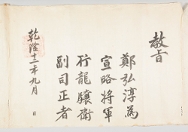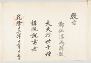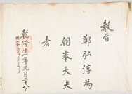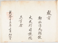 도광 14년(1834, 순조34) 4월에 이조에서 영은문 북변 노제(迎恩門北邊路祭)의 헌관(獻官) 풍안군(豊安君) 유씨(柳氏)를 서계한 일로 충훈부(忠勳府)에 보낸 첩정(牒呈)과 서리(書吏) 김상식(金尙植)의 고목(告目). 이조에서 제향(祭享)하는 일입니다. 이번 -
