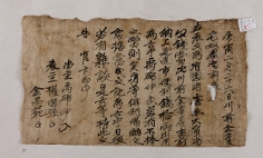 경진년 김여중(金呂重)이 누군가에게 220냥 가운데 150냥을 받아갔음을 확인해주는 내용의 수표 돈 220냥 가운데 150냥을 경진년 1월 24일에 받아감 표주(標主) 김여중(金呂重) 〔착명〕 [인〔圖書〕 1과(顆)] G002+AKS+KSM-XD.0000.0000- -