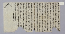 어느 목사의 칭념으로 노비를 추쇄하고 확인한 초사 ■신 10월 초7일, 관산■■ 사노 ■■나이 50, 노 문■ (나이 ■)7, 노 창근 나이 54. ■주목사 칭념에 ■■ 또 문근 등에게 ■■■산 노 막산이 죽었는지 살았는지 여부와 노 창근 노의 처부 노 범산을 알았 -
