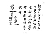 건륭(乾隆) 26년(辛巳) 3월 일 만경현(萬頃縣)이 작성해주는 입안(立案) 이 입안(立案)은 공증하기 위해 발급하는 것이다. 이 문서에 첨부된 과장(課狀)에 의거하여 증인과 필집 등 각 사람들에게 초사(招辭)를 받았다고 하였으므로, 본문기(本文記)를 상고해보니 옹 -