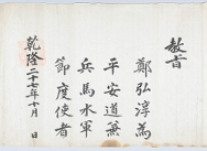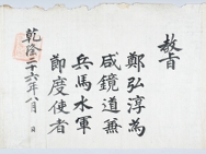 1762년 平安道觀察使 兼兵馬水軍節度使巡察使館餉使平壤府尹 정홍순에게 密符 제9符와 함께 내린 密符 諭書.고문서-교령류-유서 국왕·왕실-교령-유서 120책 안성 보체 동래정씨 정홍순 종가 고문서-고문서-교령류-유서 1762년 정홍순(鄭弘淳) 유서(諭書) 영조 정홍순 1762 1 諭書之寶 120 고문서 교령류 교령류 유서 6 120_0313 한국 고문서 조사정리 및 보존 -