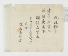 高祖의 神主를 埋魂하고, 考․妣의 신주를 사당으로 들이는 일정을 정하기 위해 작성한 祧埋擇日記.고문서-치부기록류-택기 종교·풍속-민간신앙-택기 봉화 법전 진주강씨 고암 강임 후손가 전적-고문서-치부기록류-택기 조매택일기(祧埋擇日記) 1 고문서 치부기록류 치부기록류 택기 16 D08_1382 한국 고문서 조사정리 및 보존처리 사업 봉화 법전 진주강씨 고암 강임 -
