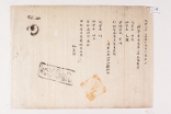 一道面中方里戶口單子 第統第四戶幼學鱞夫金聲呂年三十二甲寅本扶安 父學生後起 祖學生興台 曾祖學生義敏 外祖學生趙渭彩本咸陽 率弟童蒙聲鐸年二十一乙丑乙酉戶口自首者 行郡守〔押〕 (官印 方7cm一個) ([周挾無改印] 4.5×14cm) 일도면(一道面) 중방리(中方里) 호구단자(戶口單子 -