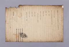 立案 7 嘉慶二十年七月日 義城官立案 右立案爲成給事 節狀者告狀 據各人等招辭是置有亦上項允每身及其矣後所生 並以金奴日孫處捧價永賣的實故 縣上葉貼冊良中 案成出者義城官〔押〕 二十五日 (題辭) 立案成給事 G002+AKS+KSM-XD.1815.4773-20101008.B005c_ -