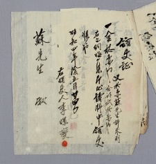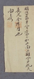 明治四十四年一月十六日加山面長尺里 庚秋財署主人條伍拾參〔圖書〕 戔領收事 面長〔圖書〕 G002+AKS+KSM-XD.1911.0405-20190131.B042a_000_B00800177-TXT -