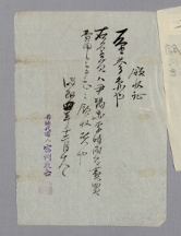 證書類 15 領証 一金伍仟圓也 右金額은本年二月二十 二日貸附金六仟圓 中으로爲先正히領收 니殘金額壹仟 圓也 明治四十五年三月廿日 尹佑炳 尹夏重 座下 G002+AKS+KSM-XD.1912.0000-20101008.B004a_004_01767_XXX-TXT -