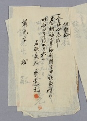 記 四十參年十二月十八日貸附金拾円也 〔圖書〕 金壹円參拾四錢月六分已之 而秋七月間利子 四十四二月■■■(十七日)卄二日送 右正領收〔圖書〕 也〔圖書〕 〔圖書〕(明治四拾四年二月卄二日) 申鉉九前 G002+AKS+KSM-XD.1911.0405-20190131.B042a_000_B -