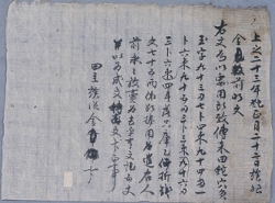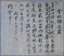 9. 分財記類 27 寄從孫 吾今九十殘年垂死之日也 當此大殺之歲 無路保命生活之策 故萬不得己傳來畓江亭洞員厥字畓二斗五升落㐣 許汝放賣汝矣某條斥賣以爲小須曳延命之地可也 癸丑正月七日從祖〔着名〕 마. 別給文記 종손(從孫)에게 부친다. 나는 지금 90세의 쇠잔한 나이로 죽음이 드리워 -