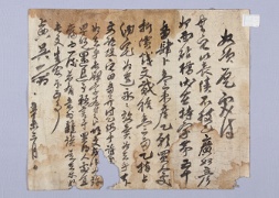 ▣…▣年二月初八日, 可倉寺三寶處明文. ▣…▣矣子應鶴亦, 本寺所用, 錀柬海一件, ▣…▣貼匙一, 白木五疋, 白米五斗, 海草五十▣ ▣…▣冊二券, 直領衣乙, 偸去爲有如可, 現露▣…▣ 將爲告官次, 矣亦, 父子之情, 不忍恝▣…▣ 和明文成置爲去乎, 雄牛一隻乙, 所偸▣…▣ 假給爲 -