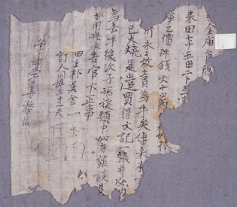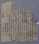 右明文爲□… 故, 自己賣得畓, 水□員□[字]□… 元畓四負一束, 七十負九束, 八[十] 畓一負九束, 九十五畓五束, 七十□… 一負五束, 五作合卜數九負□… 五斗落只廤, 價折錢文壹□… 乙, 依數捧用是遣, 以新舊文記, 幷右宅前, 永永□…□日後若[有]□… 以此文記, 告官卞政事. -
