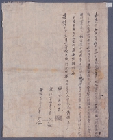 嘉靖十七年六月初三日孫判書宅明文 右明文爲臥乎事段家翁衿得浦过長命員田拾斗落只㐣他官耕食 爲難哛不喩艱難寡婦亦家翁矣祭事之物■■(乙良)乙良置■唯備無由 一一祭祀不得哀閔乙仍于禾九歲雌牛一今年生犢一六歲雌牛一木綿折陸拾伍疋上餘介 [印] 木綿拾疋合柒拾伍疋依數捧上爲遣永永放賣爲去乎後次女矣願意不 -