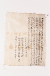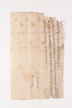 〔萬曆三九〕年辛亥十一月十八日尹監司宅戶奴定福處明文 ▣…▣要用所致以父母前衿得使喚婢末叱介年卅一己卯同▣…▣ ▣…▣介年三己酉二口良中價折楮貨四千丈(?)本五升木綿四拾▣…▣ ▣…▣爲遣同定福上典宅亦中衿得本明文後所生幷以▣…▣ ▣…▣爲去乎後次同生族類等或有雜談爲去乙等此文▣…▣ ▣…▣辨正 -