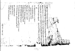 〔萬曆〕參拾捌年庚戌十月十伍日, 宜寧宅奴唜同處明文. 右明文爲臥乎{事/叱}段, 矣身亦, 身貢是沙餘良, 今年飢荒受 食, 公私債備納無路乙仍于, 矣無後四寸汗非衿得使喚〔爲去乎〕, 奉化居婢守今一所生奴龍伊, 二所生婢龍德, 四所生〔奴龍] 山改名龍金等身乙, 前後所生幷以, 折楮貨肆千丈 -